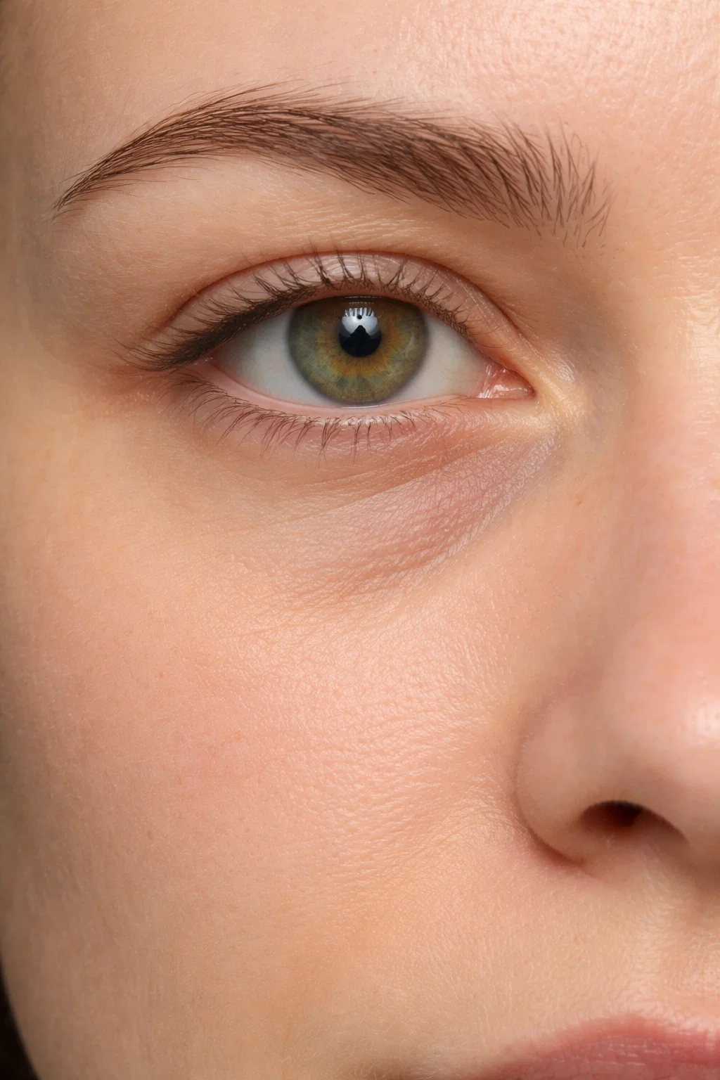 O envelhecimento fisiológico também impacta diretamente a região periorbital, promovendo redução do tecido gorduroso subcutâneo e afinamento cutâneo. Como consequência, há maior evidência do sulco lacrimal, com intensificação do sombreamento conforme a incidência de luz no ambiente.