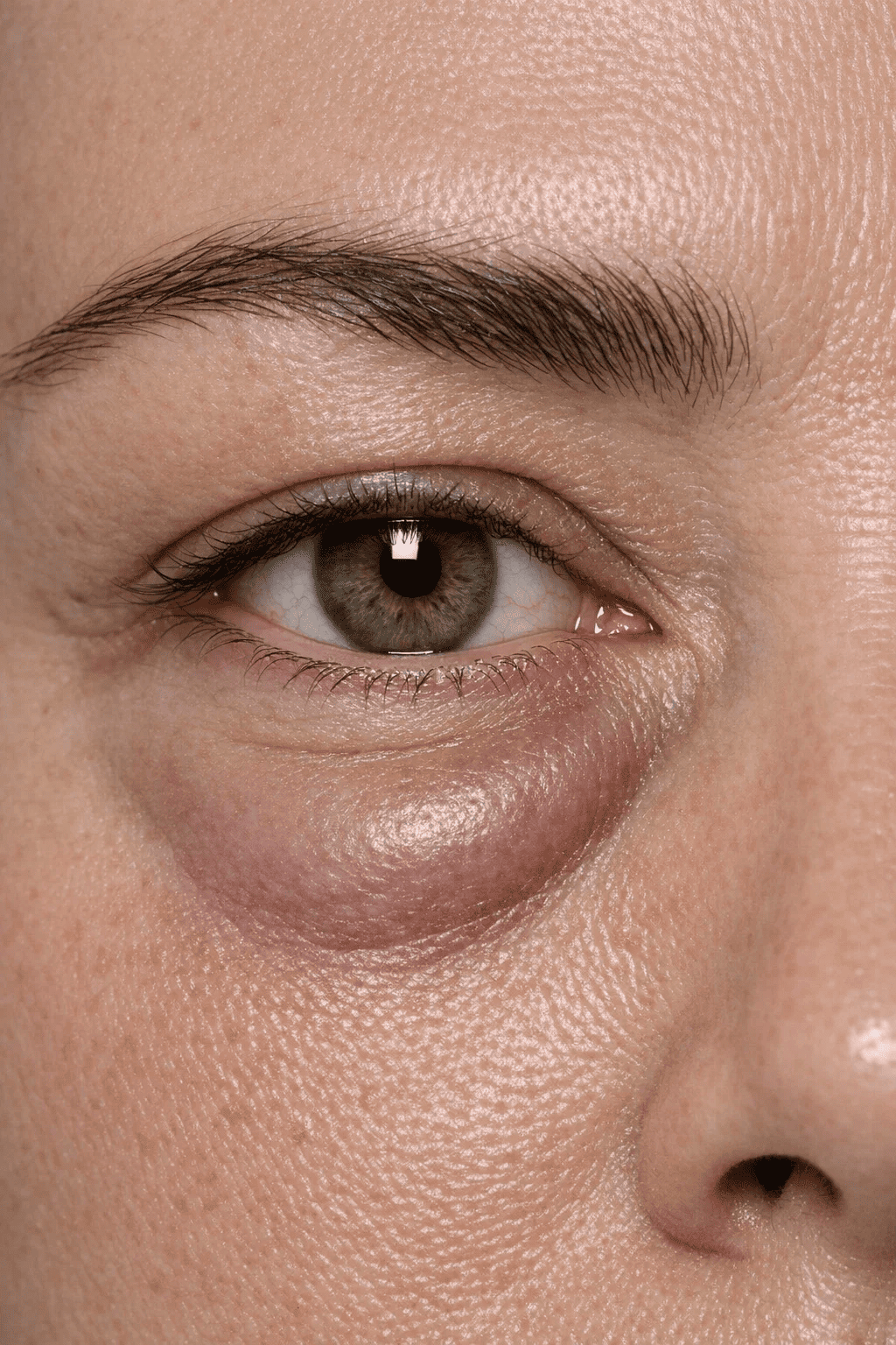 O edema periorbital manifesta-se por um aspecto edemaciado e amolecido da pálpebra, decorrente do acúmulo de líquido na região. Clinicamente, pode apresentar coloração arroxeada e tende a ser mais evidente no período da manhã ou após a ingestão de alimentos ricos em sódio.